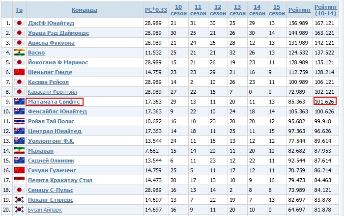 Андрей Викторович | Рейтинг команд Конфедерации за 10-14 сезоны